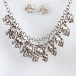 Multi - Elephant On Chain Metal Silver Necklace And Earring Set